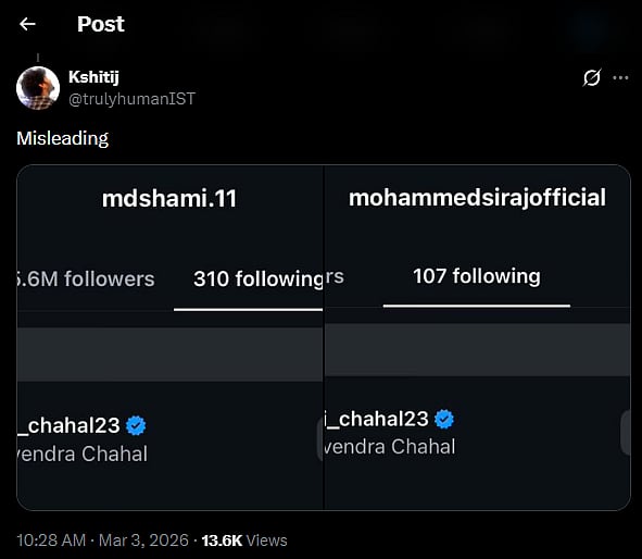 Simultaneously, rumours started circulating on-line claiming that Chahal’s Indian teammates Mohammed Siraj and Mohammed Shami had unfollowed him on Instagram in response to the publish. However, fact-checking by a number of retailers reveals this declare is fake, neither Siraj nor Shami has unfollowed Chahal on the platform, and there’s no verifiable proof to help the narrative of a rift between them. The hearsay seems to have originated from social media hypothesis somewhat than confirmed exercise on their accounts.