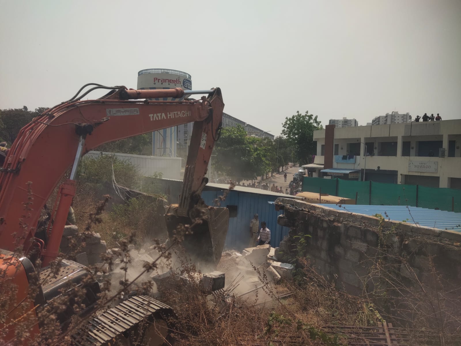 Earlier within the day, residents of Praneeth Pranav Antilia protested towards the demolition of the compound wall. Minor scuffles have been reported through the protest as officers and staff started eradicating the construction.