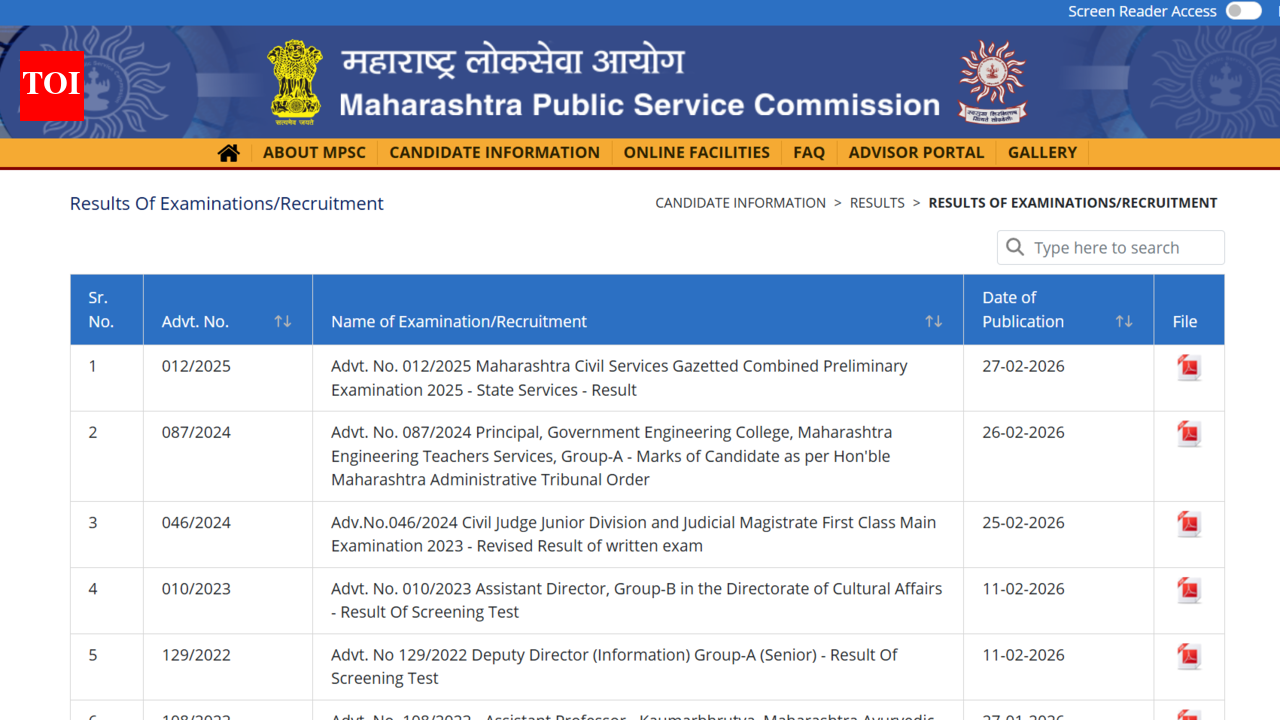 - Select the MPSC Civil Services Result 2025 hyperlink.