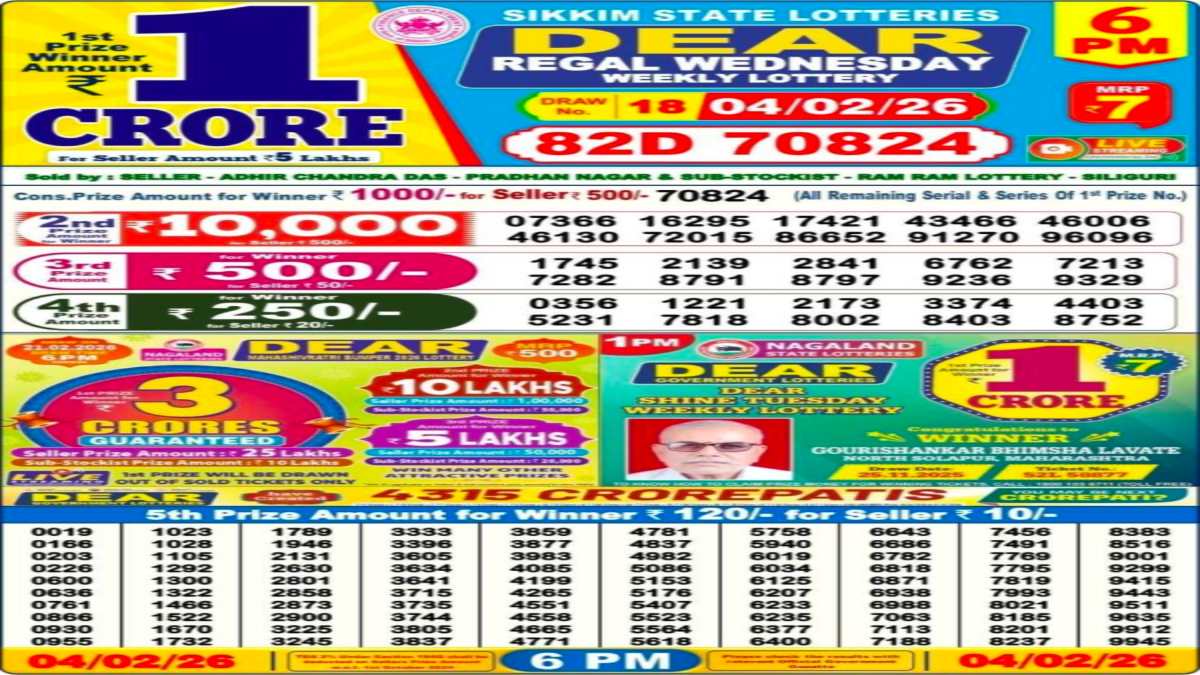 Among the various lucky draws, the Dear Morning Lottery (1:00 PM), Dear Day Lottery (6:00 PM) and Dear Evening Lottery (8:00 PM) are conducted regularly. On Wednesday, February 4, 2026, participants were keenly tracking the Sambad Lottery 6 PM Dear Weekly Wednesday Lucky Draw.