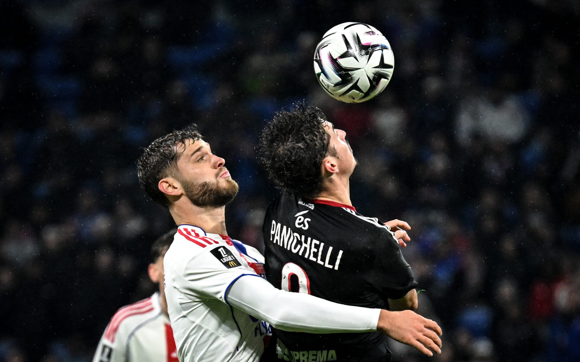Tanner Tessmann (OL) face à Joaquín Panichelli (Strasbourg) (Photo by OLIVIER CHASSIGNOLE / AFP)